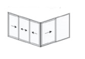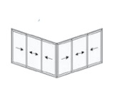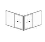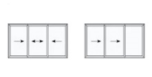 - Montantes verticales en el cruce de las hojas de 38 mm o 26 mm de aluminio visto frontalmente (dos versiones a elegir).