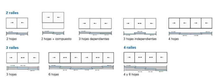 • Dimensiones máximas: Hasta L 4 ,30 m x H 2 ,60 m. Balconera 2 hojas 2 raíles.
